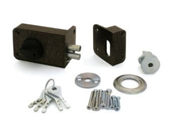 Накладной дверной замок представляет собой механизм, который помещен в защитный металлический корпус. Для установки на дверное полотно достаточно проделать отверстие под цилиндр и несколько отверстий для крепежных шурупов.